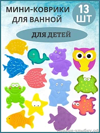 Набор мини-ковриков для ванной "Большой микс" 13 шт + 1 коврик-липучка полочка.