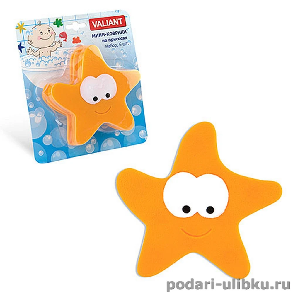 Мини-коврик для ванной Valiant Звёздочка - забавная и полезная игрушка для ванной. Коврик прочно крепится на любую гладкую поверхность с помощью присосок. А малыши очень любят переклеивать яркие картинки с места на место во время купания.