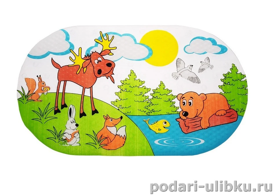 Коврик противоскользящий для ванны Valiant "Лесные животные" - это яркий аксессуар для ванной комнаты и необходимая вещь для семьи в которой есть маленький ребёнок.