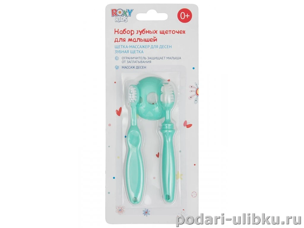 Детский набор "зубная щетка + массажер с ограничителем" Roxy-Kids сделает уход за нежными деснами и первыми зубками малыша удобным и эффективным. Выполненный из гипоаллергенных, качественных материалов, набор полностью безопасен для малыша.