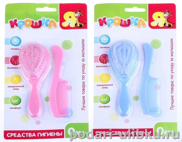 Набор обеспечивает быстрый и комфортный уход за первыми волосами ребенка. Зубчики расчески закруглены для того, чтобы ребенок не поранился, щетка имеет мягкую щетину, которая не раздражает детскую кожу.