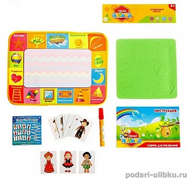 Разноцветный коврик для рисования водой "Предметы", штампы + БОНУС