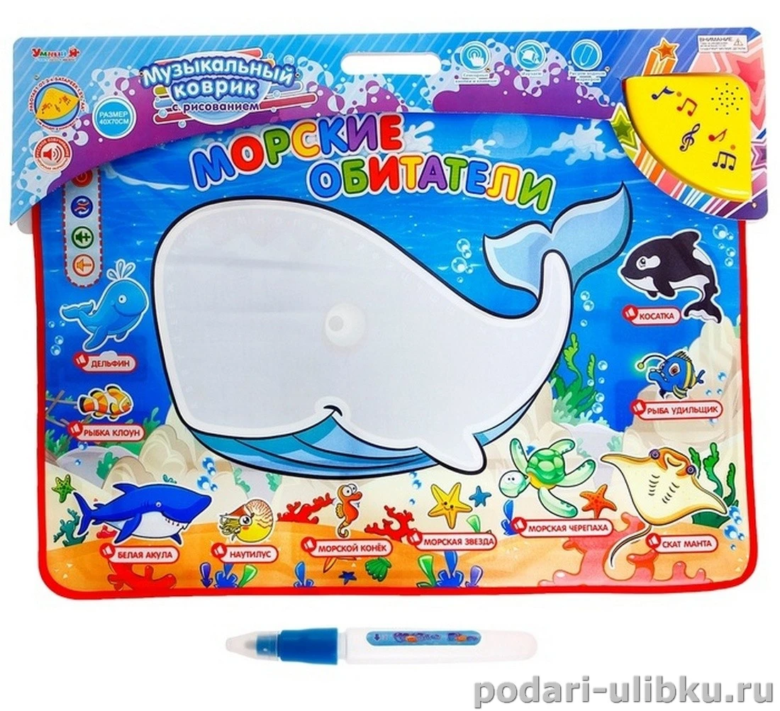 Коврик музыкальный для рисования водой "Морские обитатели" Умный Я станет отличным подарком малышу и надолго захватит его внимание.