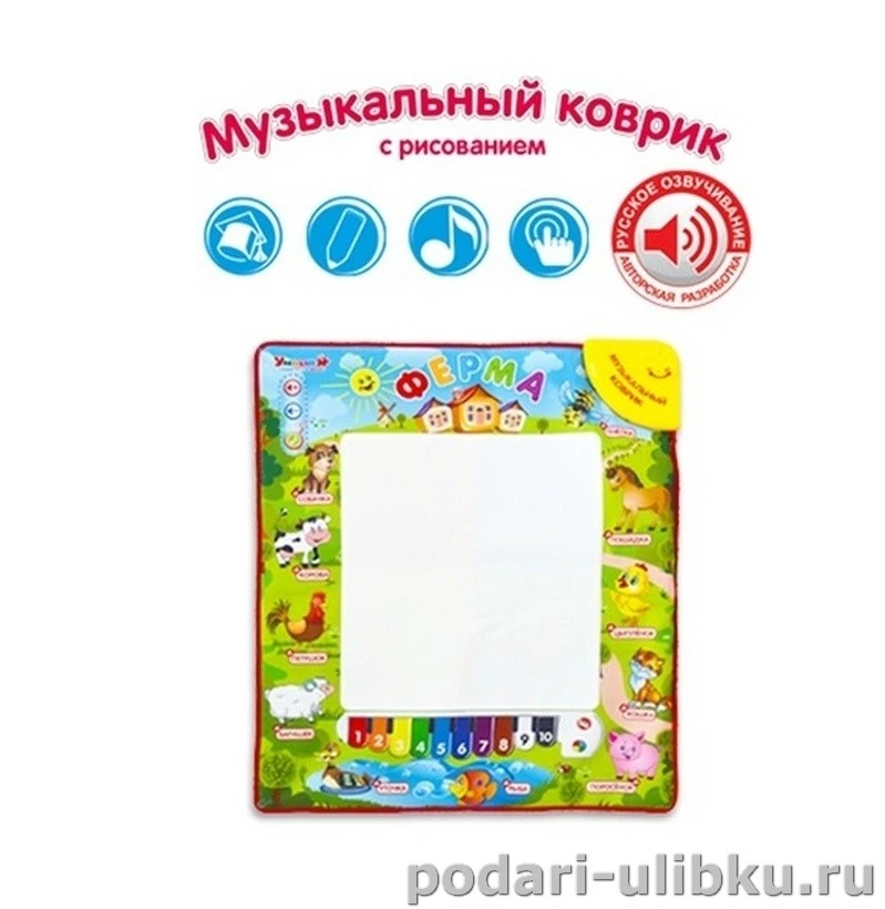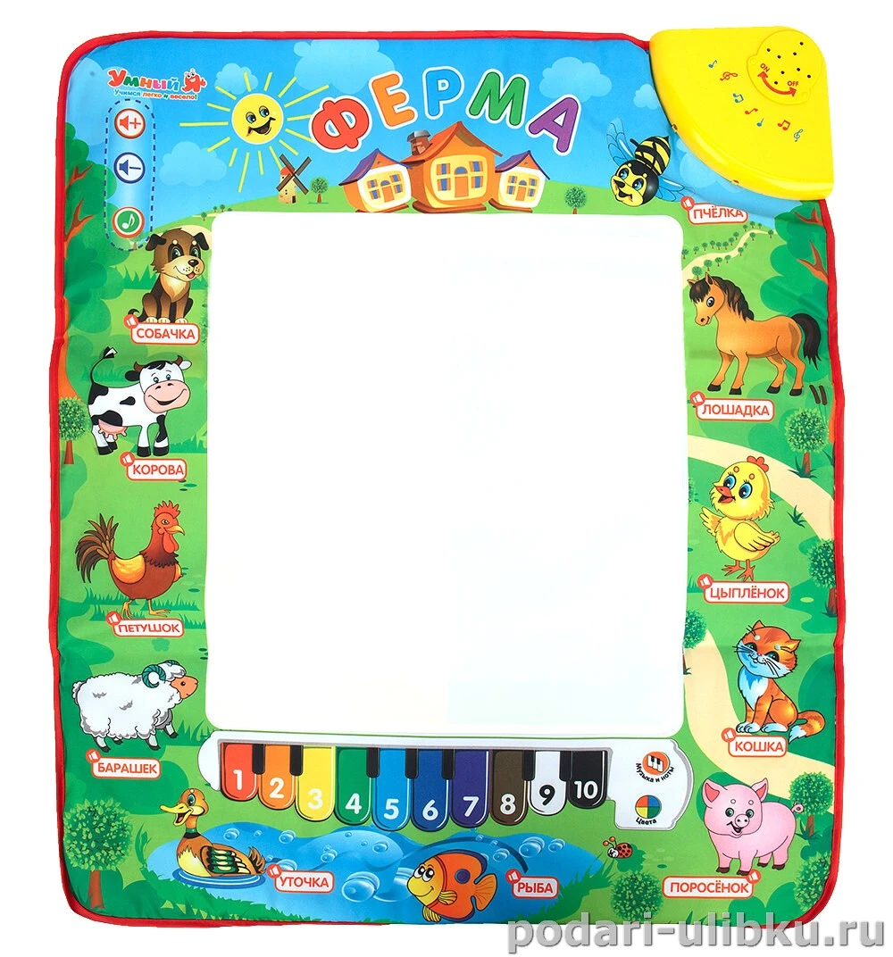 Музыкальный коврик "Ферма" - удивительная игрушка, совмещающая в себе музыкальные, развивающие элементы и возможность рисовать.