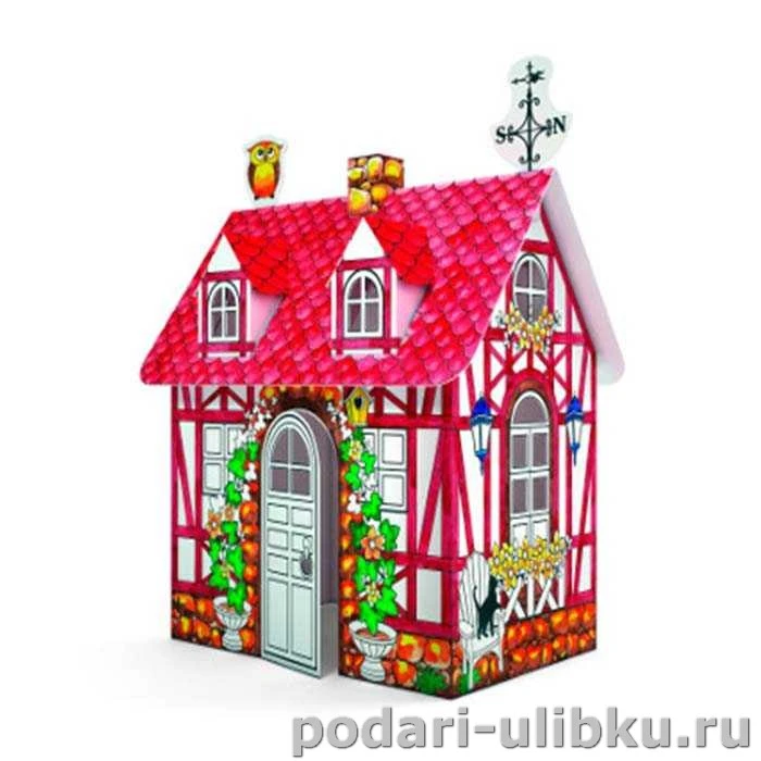 Деревенский дом увлечёт ребёнка на долгие часы, ведь это очень увлекательно самому собрать большой домик, а потом раскрасить его в своём неповторимом стиле. Дом так же можно декорировать. После того, как ребёнок самостоятельно соберёт домик из деталей, а затем раскрасит его, он может послужить игрушкой, небольшим убежищем или украсить интерьер детской комнаты.