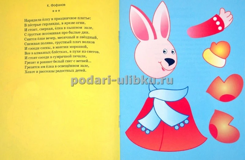 На страничках книжки ребёнок встретит Деда Мороза и Снегурочку и их друзей. Также в книжке замечательные стихи про Новый год.