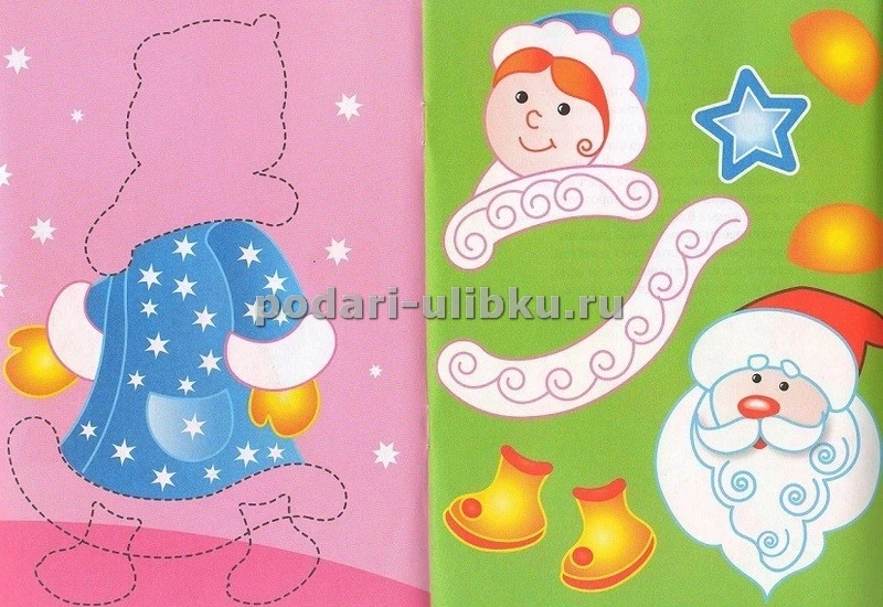 Дед Мороз и Снегурочка. Аппликация - яркое развивающее пособие для самых маленьких.