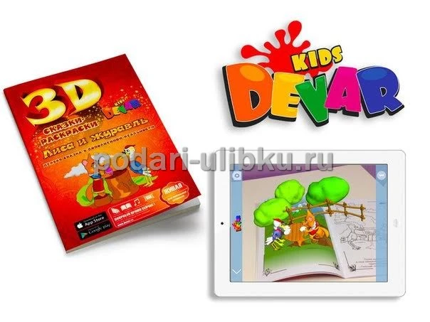 Живая 3D сказка -раскраска Devar Kids "Лиса и Журавль" - это не просто книжка или раскраска, это детская книга, сказка и раскраска в дополненной реальности. Уникальный продукт для Российского рынка, позволяющий ребёнку не только раскрашивать страницы или читать книгу, но и оживлять раскрашенных персонажей, слушать аудио сказку, смотреть созданный собственными руками мультфильм.