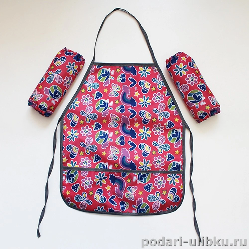 Фартук очень пригодится детям во время домашних хлопот и помощи по кухне, а также на уроках труда или изобразительного искусства или в домашних творческих процессах. Он надежно защитит одежду от загрязнения, сохранив ее чистой и аккуратной. Создавать настоящие шедевры на уроках творчества гораздо веселее, если не нужно думать о чистоте одежды. Благодаря удобному покрою фартука, ребенок может его самостоятельно надевать и снимать. Тесемочки позволяют завязать фартук вокруг талии. Нарукавники снабжены резинками и хорошо держатся на руках и помогают не испачкать рукава.