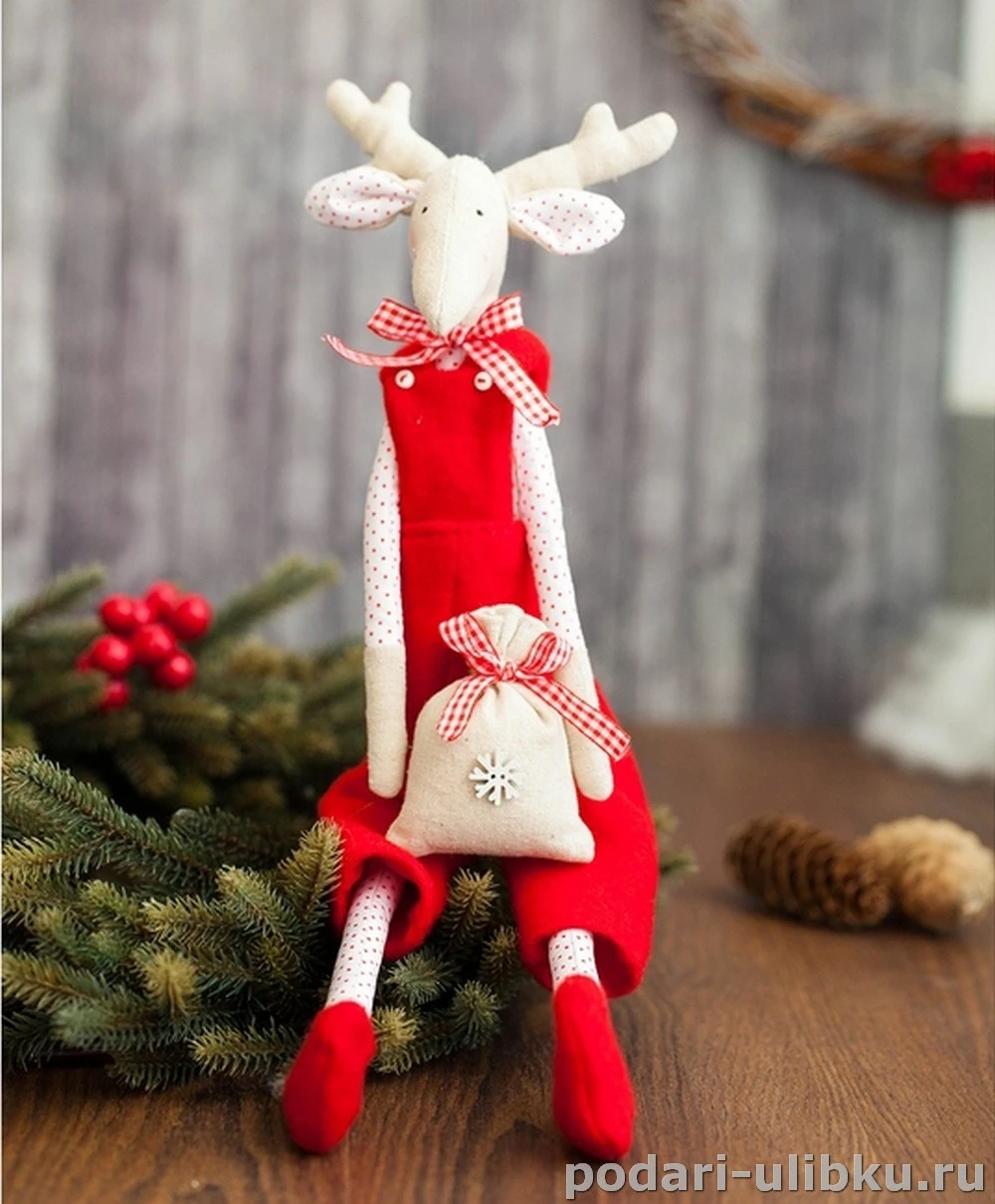 Набор для шитья Куклы Тильды "Домашний олень Кевин" - это готовый набор, который содержит всё самое необходимое для изготовления шикарного оленя в красном комбинезоне в технике Тильда.