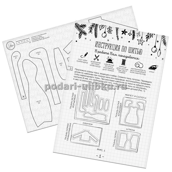 Все эти богатства упакованы в плотную картонную коробку с изображением зимнего уютного зайчика, которого Вы будете шить.