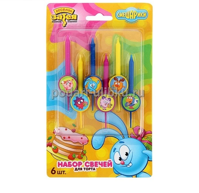Набор свечей для торта "Смешарики" 6шт станет отличным дополнением с праздничному угощению!