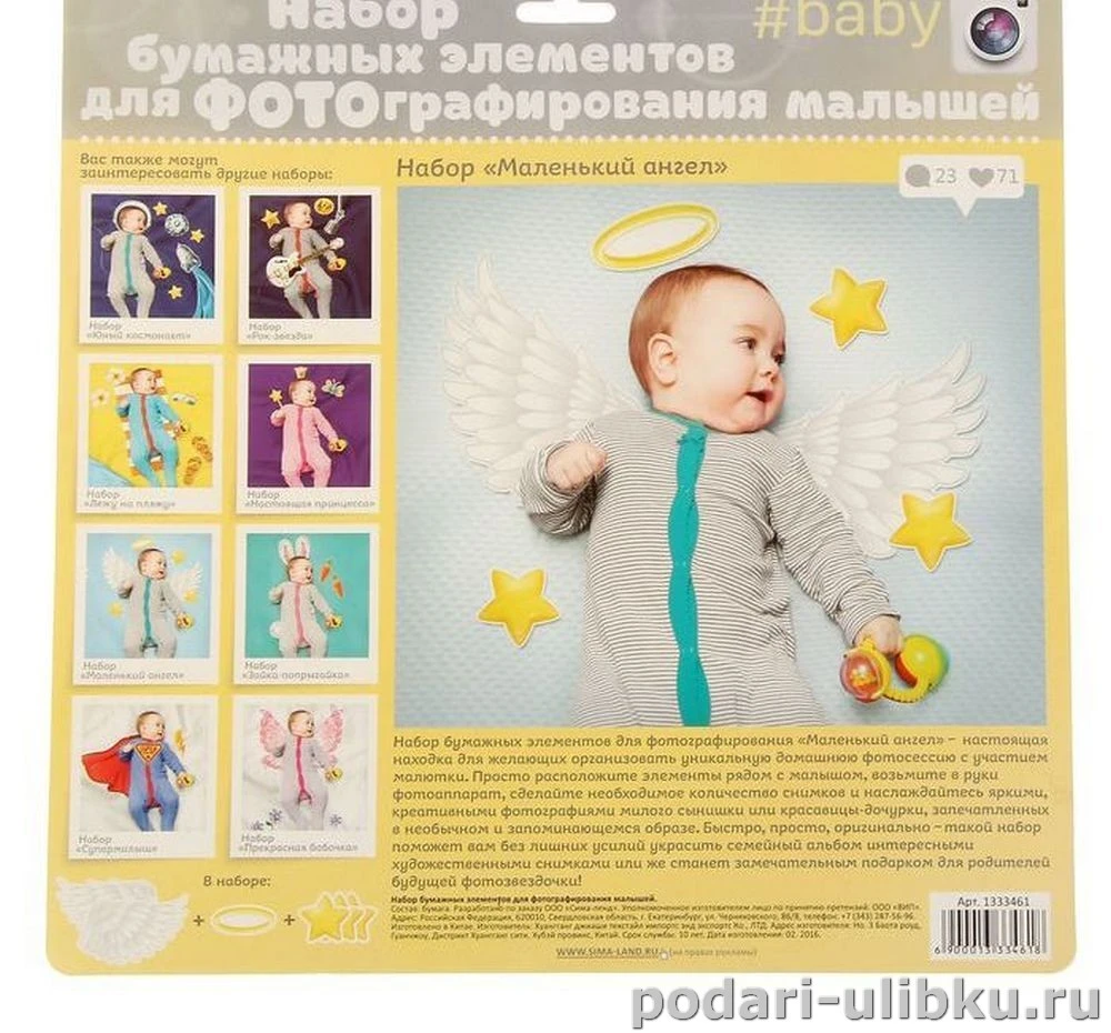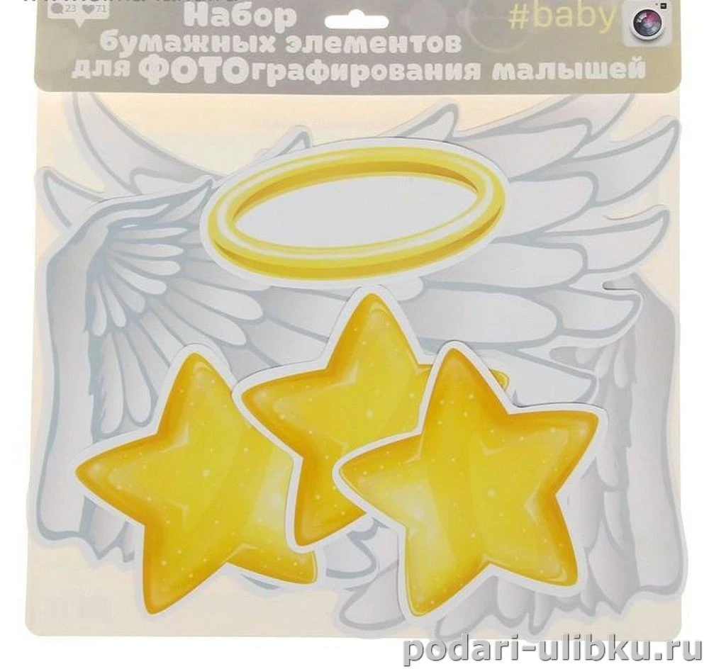 Набор бумажных элементов для детской фотосессии "Маленький ангел" - настоящая находка для желающих организовать уникальную домашнюю фотосессию с участием любимого малютки. Просто расположите элементы рядом с малышом, возьмите в руки фотоаппарат и сделайте оригинальные снимки!