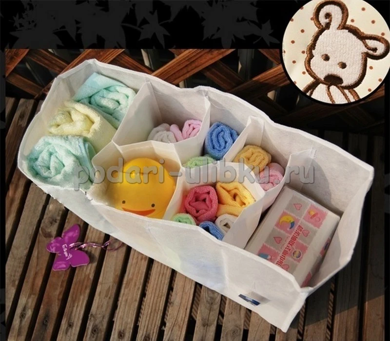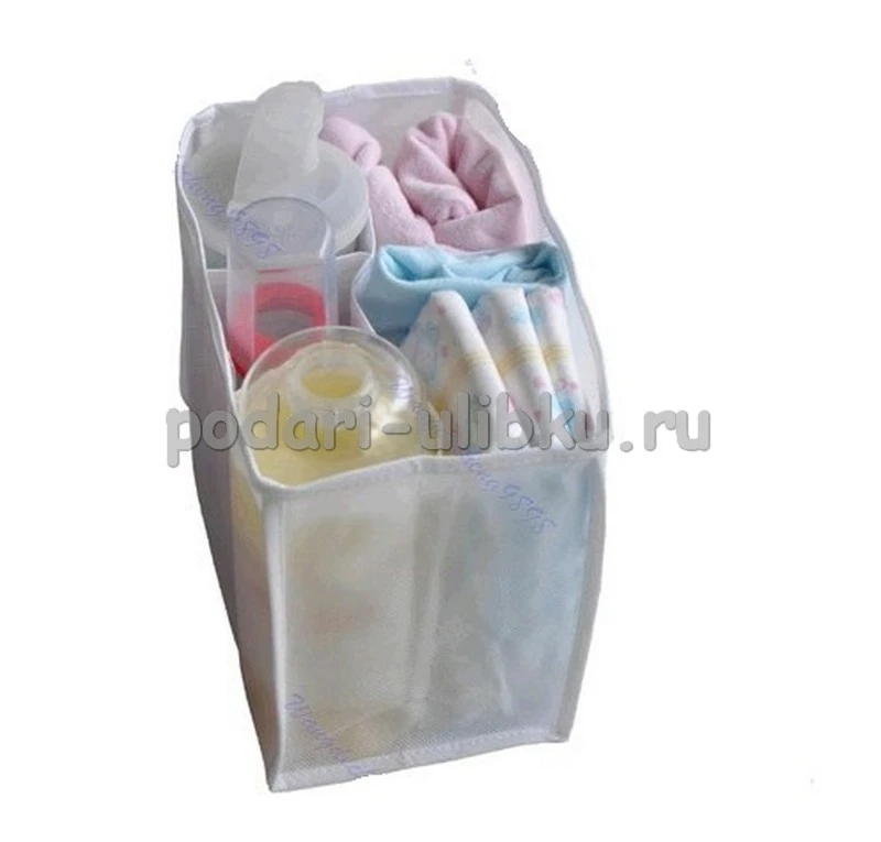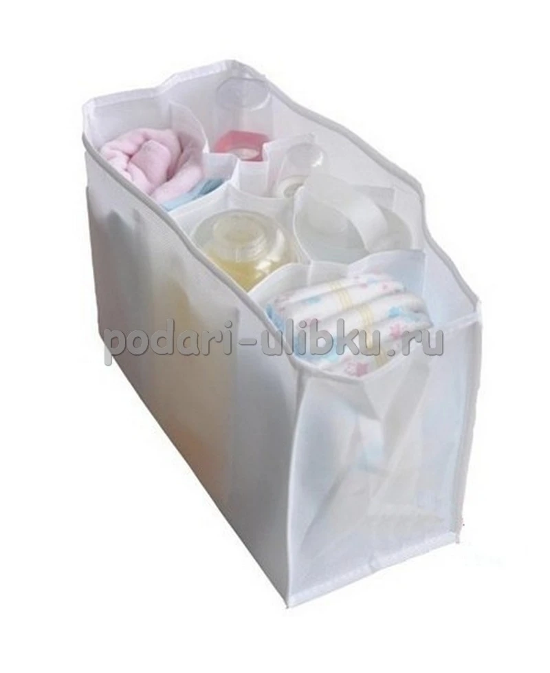 А так же можно использовать как настольный органайзер для пеленальных принадлежностей или детской косметики