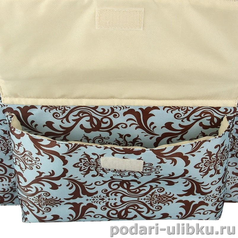 У сумочки много различных отделений и кармашков как снаружи, так и внутри сумки. Это поможет разместить все необходимые вещи малыша. А для грязных вещей или подгузников предусмотрен специальный файл, чтобы сохранять чистоту и порядок в сумке.