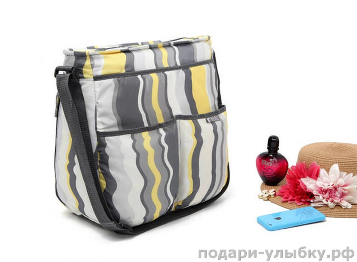Сумку можно носить на плече, а при необходимости повесить на коляску за наплечный ремень.