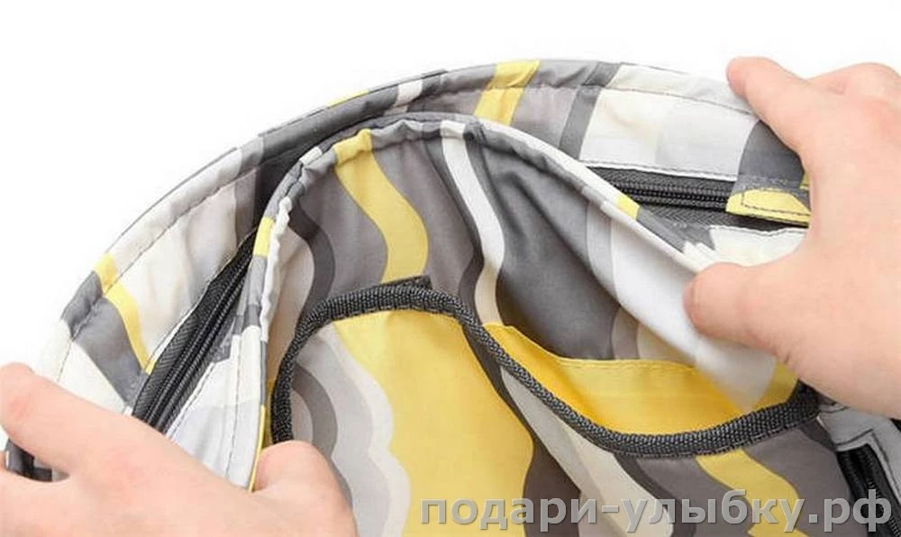 В верхней части сумки вшит прочный, упругий каркас удерживающая форму.